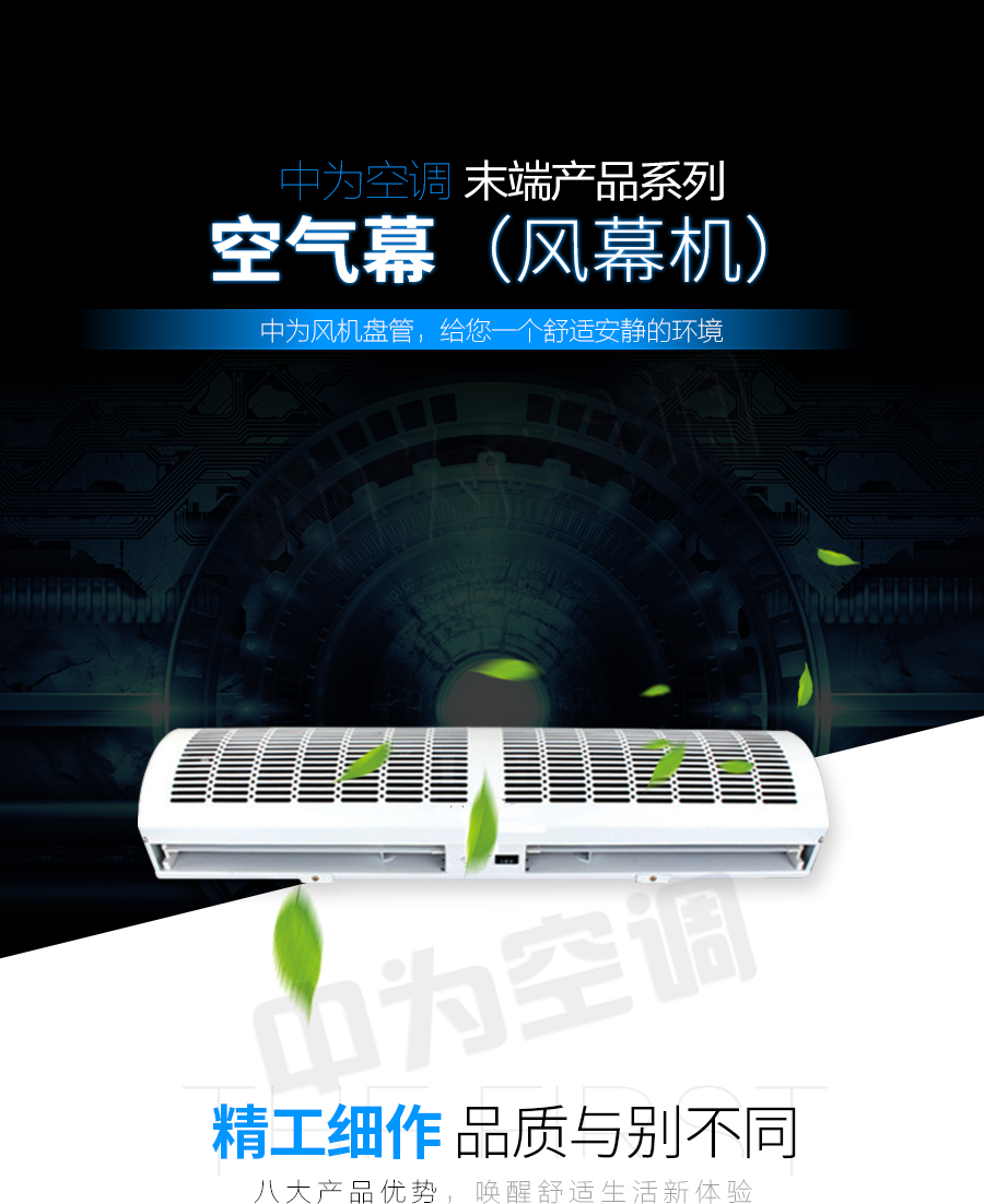 中為空調(diào)——空氣幕,在現(xiàn)代化建設(shè)過程中,隨著工業(yè)生產(chǎn)、科學(xué)技術(shù)、文化旅游事業(yè)的迅速發(fā)展,人們要求工作和生活環(huán)境的潔凈和舒適程度也日益提高,為了防止室外冷、熱空氣侵入和室內(nèi)污染空氣擴(kuò)散,又節(jié)省能源消耗不影響人員、車輛進(jìn)出門,采用本廠生產(chǎn)的空氣幕是一種極其有效的措施