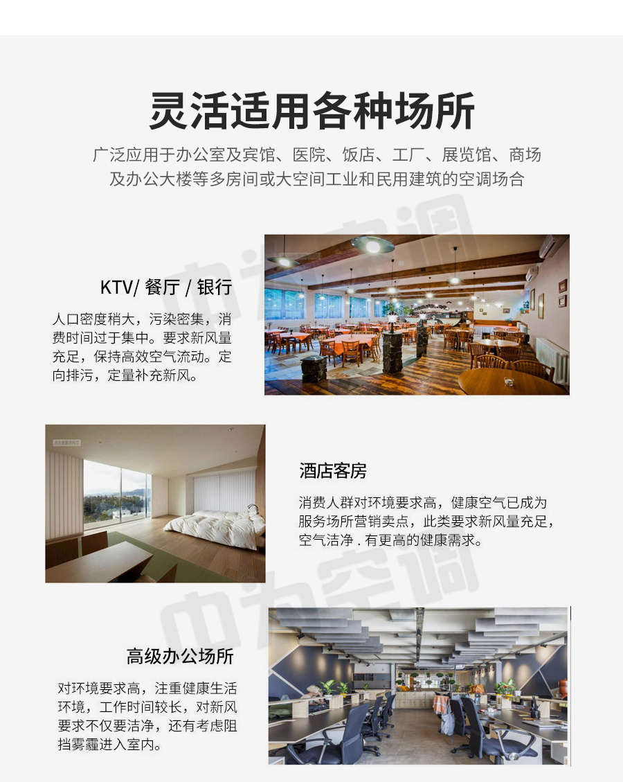 中為柜式空調(diào)機組可實現(xiàn)對空氣的加熱、冷卻、加濕、過濾凈化等多種功能。廣泛應(yīng)用于賓館、商場、機場、醫(yī)院、寫字樓等大中型公共建筑的舒適性空調(diào)和電子、紡織、化工、制藥、食品等行業(yè)的工藝性空調(diào)。該機組不僅具有制冷供熱性能優(yōu)越、噪音低、高度薄、結(jié)構(gòu)緊湊、重量輕、安裝維護(hù)方便的優(yōu)點,而且還可以配上調(diào)頻或調(diào)壓變速控制器后。按四季不同工況與現(xiàn)場空調(diào)場合匹配進(jìn)行變風(fēng)量節(jié)能運行。因此特別適用于建筑物緊湊的各類空調(diào)工程場合使用。