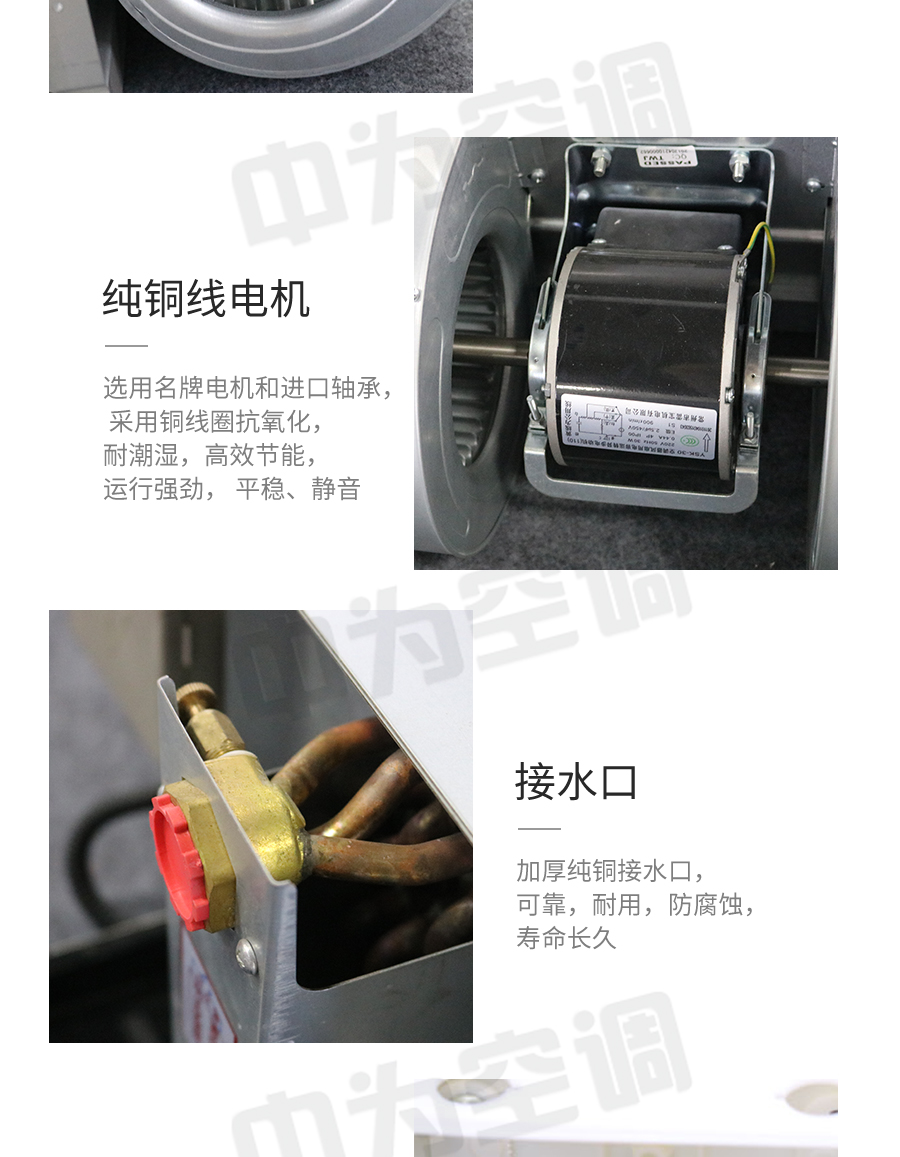 中為臥式暗裝風(fēng)機(jī)盤管是中央空調(diào)理想的末端產(chǎn)品,其工作原理是機(jī)組內(nèi)不斷的再循環(huán)所在房間或室外的空氣,使空氣通過冷水(熱水)盤管后被冷卻(加熱),以保持房間溫度的恒定。雙保風(fēng)機(jī)盤管采用優(yōu)質(zhì)薄壁無縫紫銅管與親水鋁翅片,經(jīng)液壓或機(jī)械漲管而成,傳熱系數(shù)高,韌性好,強(qiáng)度大,可承受高水壓,可以在超高層建筑使用。