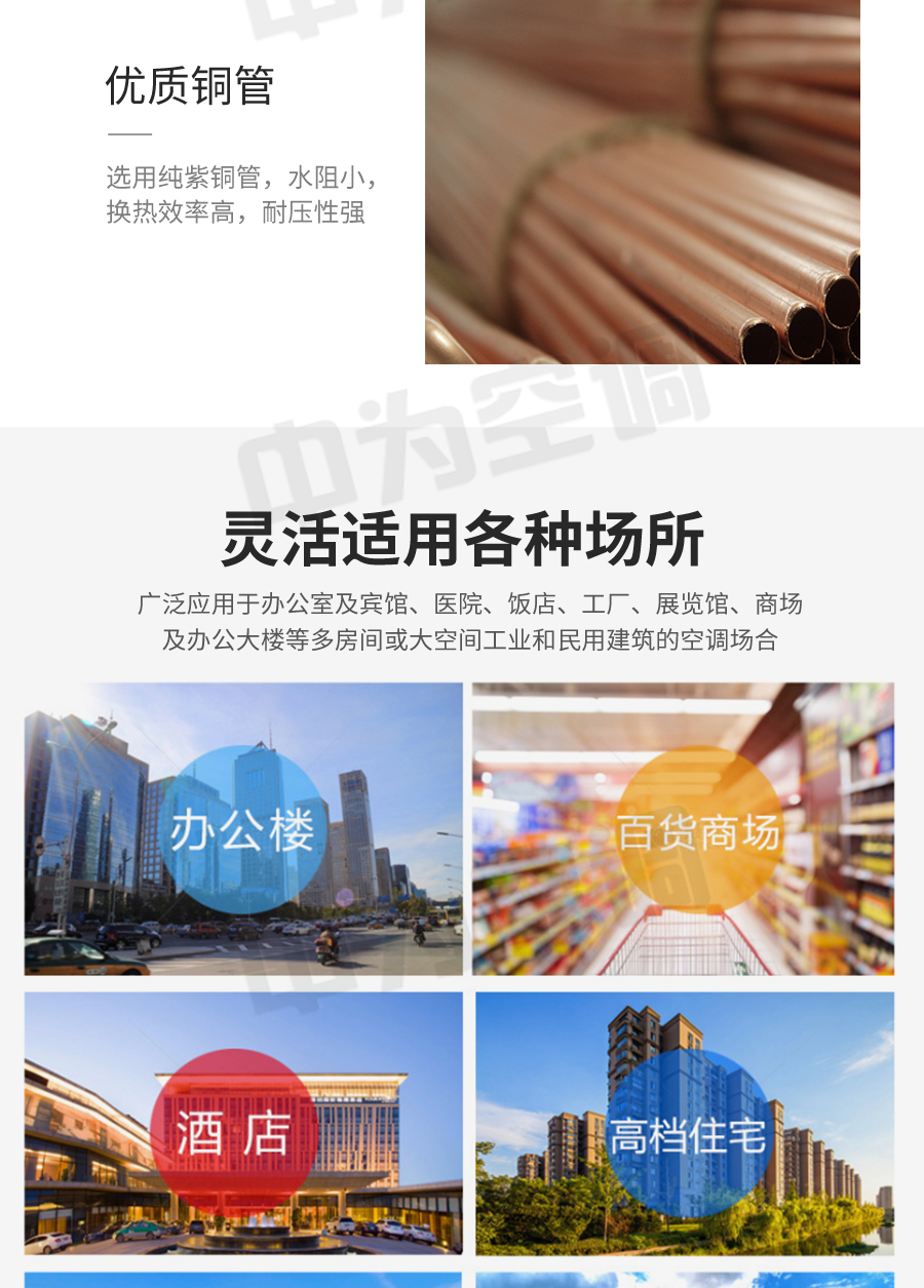 中為卡式明裝風(fēng)機(jī)盤管是中央空調(diào)理想的末端產(chǎn)品,其工作原理是機(jī)組內(nèi)不斷的再循環(huán)所在房間或室外的空氣,使空氣通過冷水(熱水)盤管后被冷卻(加熱),以保持房間溫度的恒定。外形美觀,與新風(fēng)機(jī)組配套后廣泛應(yīng)用于賓館、醫(yī)院、辦公用房、高級(jí)會(huì)議廳、展覽廳等低噪聲場(chǎng)所。